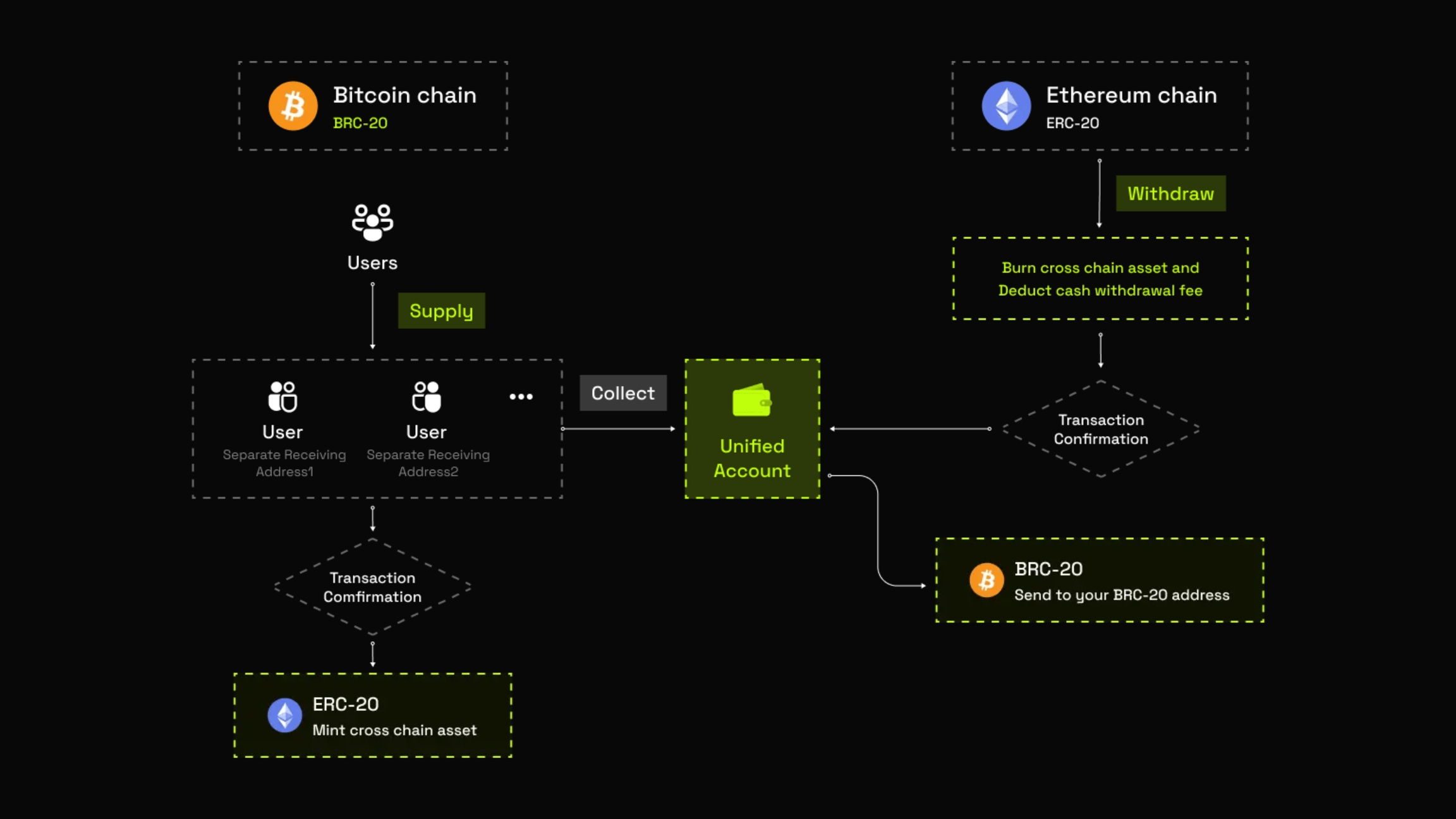 Users need to transfer BRC20 tokens to their dedicated BRC20 address for cross-chain transfer.